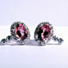 ![]() LI - LJP618 - 14KT white gold pink tourmaline and diamond earrings. Each ear is set with one 7mm X 5mm oval, pink tourmaline. Bead set, in each ear, are ten round, brilliant cut diamonds (twenty total) weighing .17 carats total weight, with color G-H, clarity SI 1 to VS 2. |
