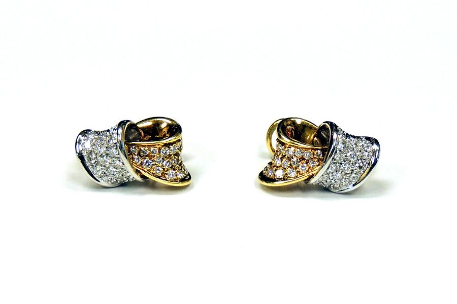 18KT yellow gold and white gold diamond earrings. Diamonds = 1.32 carats total weight Earrings have omega clips and friction posts.