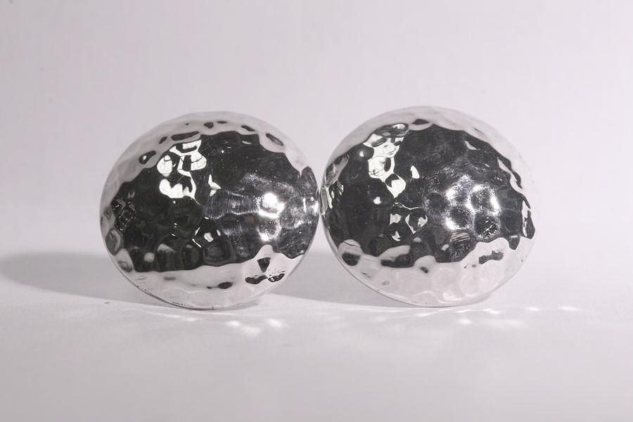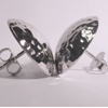 14KT white gold hammered domed earrings. Earrings measures 15.5mm in diameter, and 3.5mm high. Earrings are made from 23 gauge white gold plate.